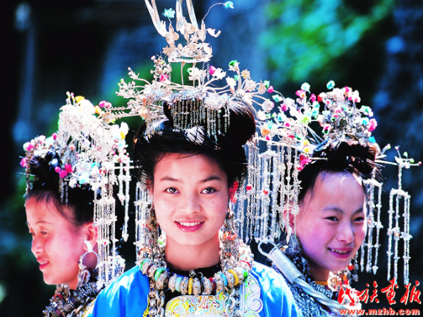 貴州榕江侗族少女頭飾 盧現(xiàn)藝攝影 引自民族畫報(bào)