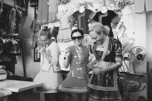 8月28日,“中美大學生聯合體驗長征之旅”大型活動走進貴州黎平古城。來自美國漢普頓大學的女大學生們,被古城翹街民族服飾店里的侗族服飾深深吸引住了,她們紛紛試穿侗族服飾,并頻頻留影,還各自買下一套侗族夏裝,像侗家姑娘一樣,把侗族的藝術和文化穿戴在身上。圖為美國女大學生穿著侗族服飾跳起舞來。