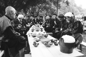 秋收開鐮“祭薩”活動上,當(dāng)?shù)囟弊迦罕妵艋鸩雀杼?/span>