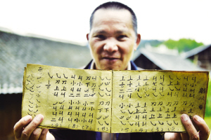 圖為仁吉侗寨村民吳昌賢在展示祖輩流傳下來的古老蘆笙曲譜。  吳國楨 攝影報道