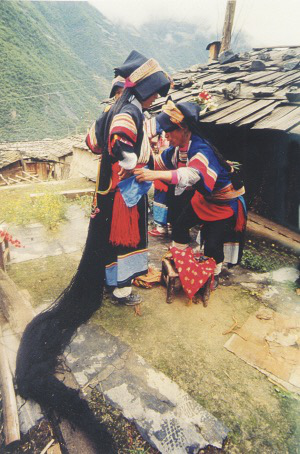待采足一百種藥草后,又相繼一路歡歌回村,聚集在泉畔或河邊擇洗藥物。邊洗藥物,邊唱山歌“唱數(shù)”各自采到的藥物的名稱、藥性、藥效。洗凈藥草,人們選出其間最壯、最好的一百種,配以各色鮮花,編制成藥仙的肖像,待舉辦頌藥仙活動(dòng)時(shí)使用。其它藥草,分揀歸類晾干備用,剩下的“腳料”,拿回家中用大鍋煎汁,待頌藥仙活動(dòng)后,兌水浴身,消災(zāi)祛病。