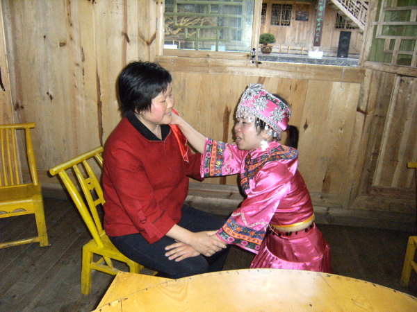 哭嫁歌內(nèi)容有“母女對(duì)哭”“嫂妹對(duì)哭”“姐妹對(duì)哭”“哭離娘席”“哭別祖宗”“哭兄弟”“哭梳頭”“罵媒人”“哭上轎”等,甚至還有同村同齡未婚姑娘的群哭——“哭十姊妹”。哭嫁歌源于土家族姑娘出嫁前的哭嫁之俗,越是臨近婚期,哭聲越悲,甚至通宵達(dá)旦。2010年,“土家族哭嫁歌”已被列入第三批國家級(jí)非物質(zhì)文化遺產(chǎn)名錄。