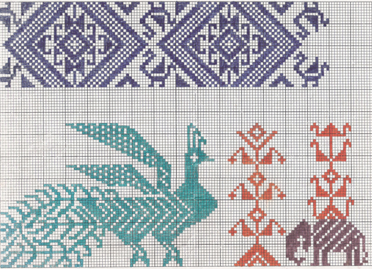 繪制蠟染的織品一般都是自織的白色土布,防染劑主要是黃蠟(即蜂蠟),有時也摻和白蠟使用,染料是貴州生產(chǎn)的藍(lán)靛。蠟染布是在布匹上涂蠟、繪圖、染色、脫蠟、漂洗而成。因為在染制的過程中,蠟白布的表面會產(chǎn)生自然龜裂,從而往白色坯布滲入染料而著色,出現(xiàn)許多或粗或細(xì)無規(guī)則的色紋也叫龜紋,這些龜紋就是區(qū)別真、仿蠟染布的標(biāo)準(zhǔn),因為任何仿蠟染布設(shè)計進(jìn)去的“龜紋”都是有規(guī)律可尋的,而真正的蠟染布往往難以尋找,也找不出完全相同的龜紋來。繪制蠟花的工具不是毛筆,而是一種自制的鋼刀。因為用毛筆蘸蠟容易冷卻凝固,而鋼制的畫刀便于保溫。這種鋼刀是用兩片或多片形狀相同的薄銅片組成,一端縛在木柄上。刀口微開而中間略空,以易于蘸蓄蜂蠟。根據(jù)繪畫各種線條的需要,有不同規(guī)格的銅刀,一般有半圓形、三角形、斧形等。
