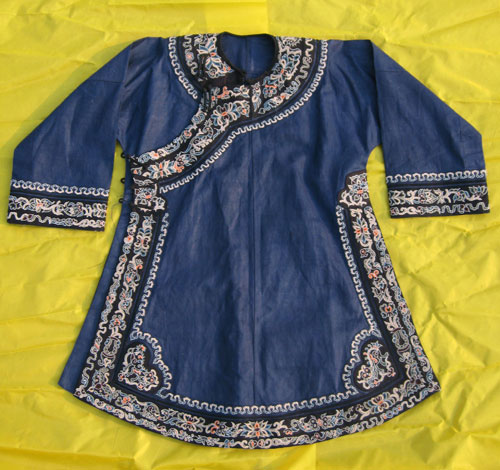 水族服飾的特點(diǎn)是“短衣長裙”,且完全用火麻土布作面料,民國以后逐漸易裙為褲。水族服飾中最有代表性的是女性的服飾。水族女服多以水家布縫制,一般不繡花邊。而節(jié)日和婚嫁盛裝與平時穿戴截然不同。婦女刺繡的背帶更有藝術(shù)性。