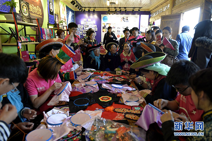 電商精準扶貧平臺唯愛工坊讓一針一線制作的土族盤繡手工藝品通過互聯(lián)網(wǎng)在全國群眾前亮相