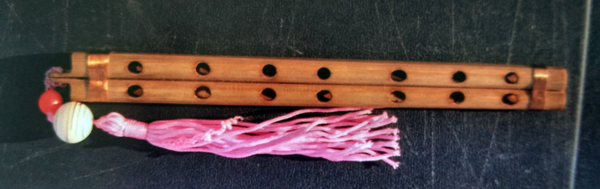 羌笛是一種吹管樂器,歷史悠久。羌笛至今已有兩千余年歷史。據史載,西漢前,羌笛面上有四孔,公元一世紀由京房加一高音按孔,為五孔。東漢馬融在《長笛賦》就曾有“近世雙笛從羌起”的記述,唐代亦有“羌笛何須怨楊柳”的名句。發(fā)展到近代羌笛已成六孔。2006年5月“羌笛演奏及制作技藝”被列入《第一批國家級非物質文化遺產目錄》。羌笛在羌語中稱為“其篥”“士布里”或是“幫”,是一種古老的民間豎吹樂器。它由兩根長約15—20厘米,直徑1厘米左右,筒孔大小一致的竹管并在一起,用絲線纏繞,管頭插著竹簧。管身竹制或骨制,由發(fā)音簧哨和方筒形管體組成。兩管長短、孔距和音高相同。管上設五個或六個按孔。演奏時,雙手持笛,將簧哨含入口內,用特殊的“鼓腮換氣法”吹奏,指法與笛相同。制作羌笛一般選用箭竹,并根據筒管的長短、厚薄及筒管大小測定音準,孔距必須精確相等,否則音準不一。