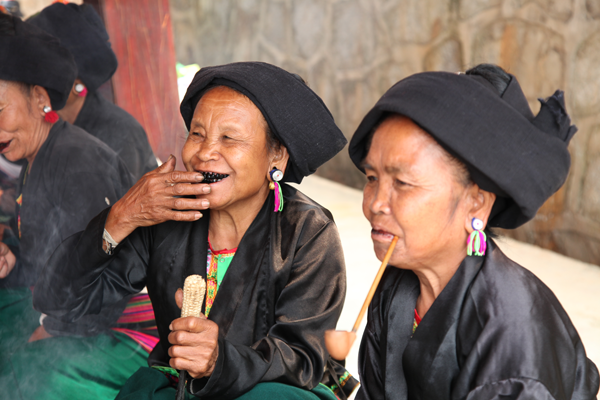 男子一般穿黑色或青色寬大長(zhǎng)褲和對(duì)襟無(wú)領(lǐng)上衣纏頭巾。成年男子喜愛文身。無(wú)論男女都喜歡飲酒、染齒、吸煙。布朗族有一獨(dú)特的風(fēng)俗“染齒”。他們認(rèn)為只有染黑的牙齒才最堅(jiān)固、最美觀。經(jīng)過(guò)染齒的男女青年才有權(quán)談戀愛。布朗族男子有文身的習(xí)俗,四肢、胸部、腹部皆刺以各種幾何圖形和飛禽走獸,然后涂上碳灰和蛇膽汁,使其不消失。