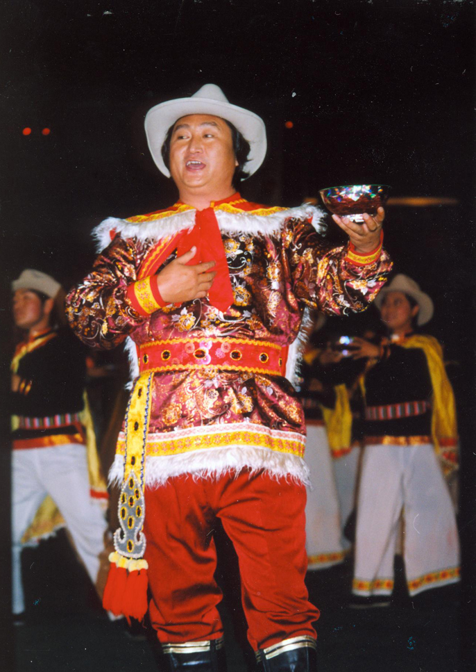 男子上衣為對(duì)襟金邊短衣,以黑白兩色為佳,扣雙鈕在肘下。下穿麻布寬襠開(kāi)桶褲,不用褲帶,下加九尺長(zhǎng),五寸寬的麻布為梆腿至腳,上加五寸寬的白麻布在襠口起收縮作用,不穿內(nèi)褲,腰間纏一根九尺長(zhǎng)的腰帶,衣褲一并栓緊,上下不分開(kāi),以便于活動(dòng)。富貴人家則腳穿靴子,靴底釘上鐵釘,走起路來(lái)格格作響,以示貴人一等。一般貧民則大多赤腳,或穿草鞋。日常生產(chǎn)勞動(dòng)中,則穿羊皮褂,用麂皮或巖羊皮制成,腰間插煙鍋。普米青壯年男子穿短上衣,有開(kāi)襟,用銀質(zhì)紐扣,穿肥腳褲子,大多喜用黑色,少數(shù)用藍(lán)色,外邊穿一件長(zhǎng)衫,束腰帶;喜用白羊毛制作腰帶,兩頭繡花,纏麻布裹腿,穿皮鞋。男子留長(zhǎng)發(fā),也用絲線把假發(fā)包纏在頭上。也有些普米男子剃光頭,僅在頭頂留一撮發(fā),編成辮子,盤(pán)于頭頂。老年男女所穿衣服與成年男女基本相同,只是衣服大多用黑色,不戴飾物,也不用假發(fā),有的也纏帕子,但多用藍(lán)包,包頭布也比青年人長(zhǎng)得多,一律扎素色腰帶,很少穿鞋。