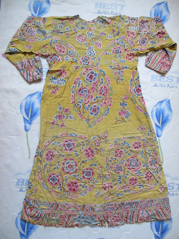 烏孜別克族女性喜愛(ài)穿連衣花裙,開(kāi)領(lǐng),寬大多褶,不束腰帶。上衣比較短,只及大腿部,無(wú)領(lǐng)、無(wú)袖、對(duì)襟,下擺的正中和正面兩邊都開(kāi)衩,形成兩片寬帶。襟和寬帶的邊都繡花。出門時(shí)還要穿斗篷、蒙面紗,從頭到腳都不能外露。
