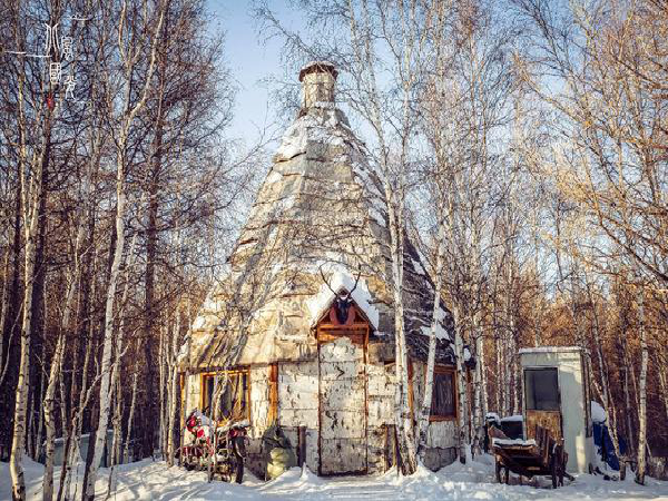 “撮羅子”又稱“斜仁柱”或“撮羅昂庫(kù)”,是鄂溫克以及鄂倫春、赫哲等東北狩獵和游牧民族的一種圓錐形“房子”?!按榱_”是“尖”、“昂庫(kù)”是“窩棚”?!靶比省笔恰澳緱U”,“柱”是“屋子”。把兩種名稱的意思合起來(lái),就是“用木桿搭起的尖頂屋”,這正是“撮羅子”最主要的特征。