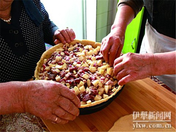 拜列西是塔塔爾族的一種傳統(tǒng)美食。68歲的買斯胡旦·熱合木是伊犁州級(jí)非遺項(xiàng)目塔塔爾族拜列西制作技藝的傳承人。她告訴記者,塔塔爾族家里來客人的時(shí)候,用餐程序往往分為三步:先上茶;其次,端來用肉湯煮的面,同時(shí)奉上煮熟的肉塊;接著,再擺上各式各樣的菜,其中,就有拜列西。