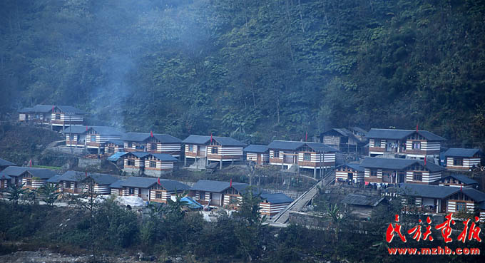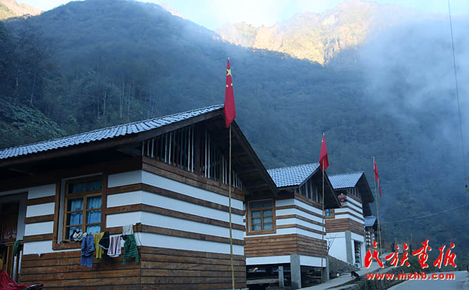 國家大力支持發(fā)展獨(dú)龍族社會事業(yè),真正為獨(dú)龍族百姓謀福利。獨(dú)龍族居民房屋前,家家掛著鮮艷的五星紅旗