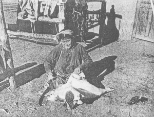 這之后,我們來到鄂倫春族的一個定居點——托河做調查。托河保留著比較完整的鄂倫春族狩獵文化,男人們打獵、捕魚,女人們則負責做飯、熟獸皮、用皮子做衣服等。女人縫獸皮衣時,用的針還是骨針,線則是野獸的筋。當然,她們還用樺樹皮做各種生活用品,如籃子、盒子、筒子等。