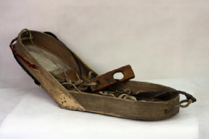搖籃是鄂倫春族的傳統(tǒng)育嬰工具(如圖,吳雅芝供圖)。游獵時(shí)期居無定所,騎馬游動(dòng)的時(shí)候母親把搖籃背在背上,孩子餓了,只需把搖籃轉(zhuǎn)到胸前就可以喂奶,不必下馬。有人在搖籃頭頂部位掛三個(gè)束紅腰帶的黑布小人,作為孩子的護(hù)身符,據(jù)說能保佑孩子健康成長(zhǎng)。也有人在搖籃頭部?jī)蓚?cè)掛木刻的小老鼠和小鳥,預(yù)示孩子像小老鼠一樣伶俐機(jī)智,像小鳥一樣展翅飛翔。