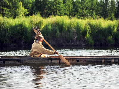 在鄂倫春族中間,還有另一種樺皮船賽的形式,即少年坐在樺皮船上,于靜靜的小河上拿棹板打水中游魚,以打中魚的多少定名次,這類比賽也是饒有趣味性的。