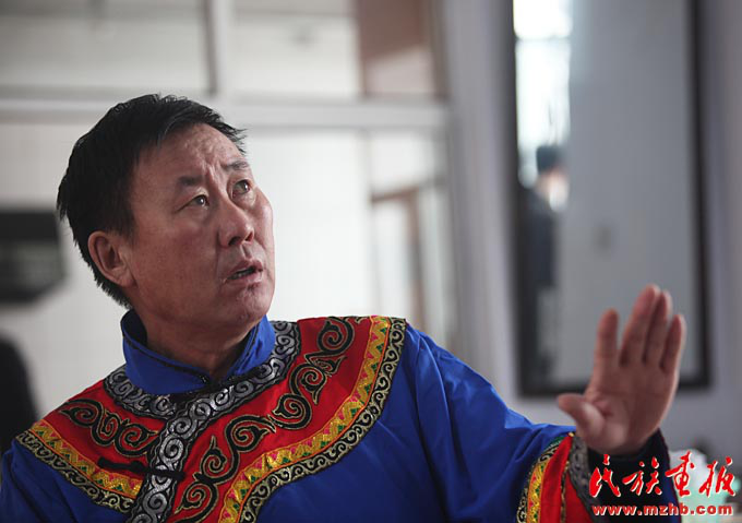 赫哲族獨(dú)特說唱藝術(shù)伊瑪堪的傳人吳寶臣(袁東平 攝影)