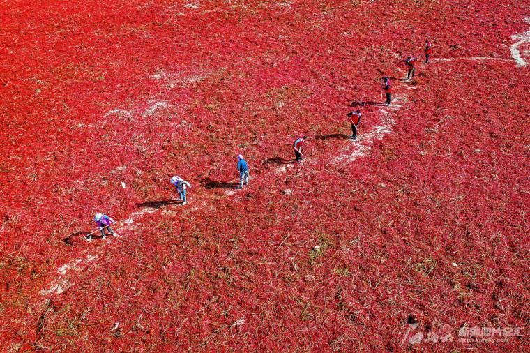 10月10日,農(nóng)民在晾曬辣椒。眼下,哈密國家農(nóng)業(yè)科技園區(qū)千余畝線辣椒喜獲豐收。今年,哈密國家農(nóng)業(yè)科技園區(qū)以政府引導(dǎo)、合作社牽頭的模式調(diào)整產(chǎn)業(yè)結(jié)構(gòu),引種用水省、效益高的訂單辣椒,助力農(nóng)民增收致富。李華攝