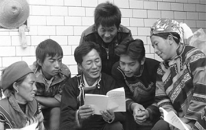 四川省西昌市大箐鄉(xiāng)民主村彝族群眾學習彝文版《十七大報告》。 資料圖片