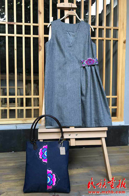 這位對彝族傳統服飾文化情有獨鐘的漢族設計師在設計服飾上大有用心,從繡品圖案的選定到服飾的整體裁剪都事必躬親。她還經常下鄉(xiāng)采風,向當地彝族繡女學習傳統彝繡知識,再把傳統圖案與現代元素相融合,一件件具有現代風格配上傳統彝繡圖案的服飾經過她的手,別具創(chuàng)意的現代風彝族服飾就像變魔法似的展現在了大眾眼前。