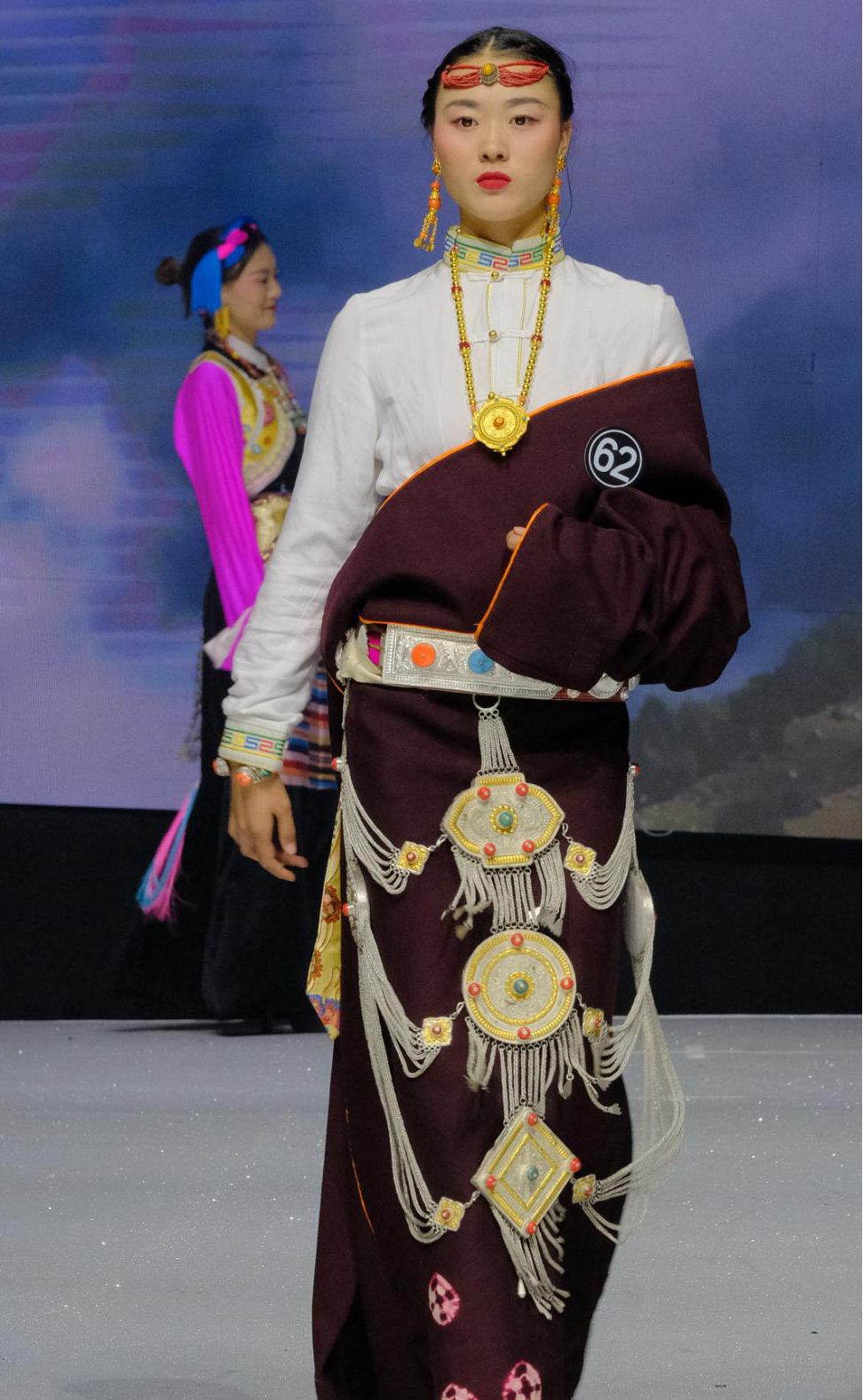 本屆藏模大賽秀臺以“從雪山走下的民族面孔”為設(shè)計理念,通過光影鋪設(shè),秀臺整體呈現(xiàn)“雪域景”、“都市風(fēng)”兩大場景,現(xiàn)場觀眾不僅能置身寰宇之巔,近距離觸摸藏民族燦爛的服飾文化,同時能夠得以一睹百大藏模時尚高光的驚艷瞬間。