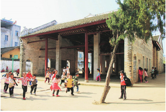 舊時(shí)的仙城書(shū)院,現(xiàn)已成為小學(xué)生的話動(dòng)場(chǎng)所 (藍(lán)炳培 攝)