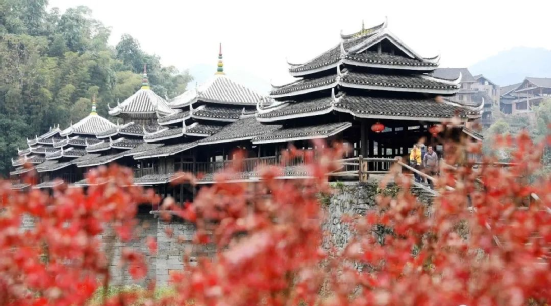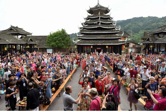 過年期間,各家各戶姓氏輪流過節(jié),親朋好友都會集中前往,最后到鼓樓坪唱歌跳舞慶祝侗年。——程陽八寨景區(qū)