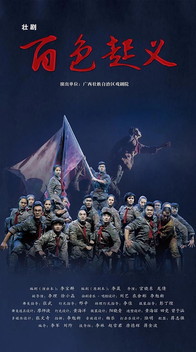 壯劇《百色起義》以1929年發(fā)生在廣西的百色起義為素材創(chuàng)作而成,以百色起義的籌備、舉行為主線,分為初到南寧、群雄聚會、英靈歌唱、百色大地等部分,通過獨具廣西特色的壯劇方式來表現紅色歷史題材,塑造了鄧小平、李明瑞、韋拔群等眾多百色起義指戰(zhàn)員形象,謳歌了舍生忘死、救國救民的革命先烈和為中國革命付出巨大犧牲的壯鄉(xiāng)人民。