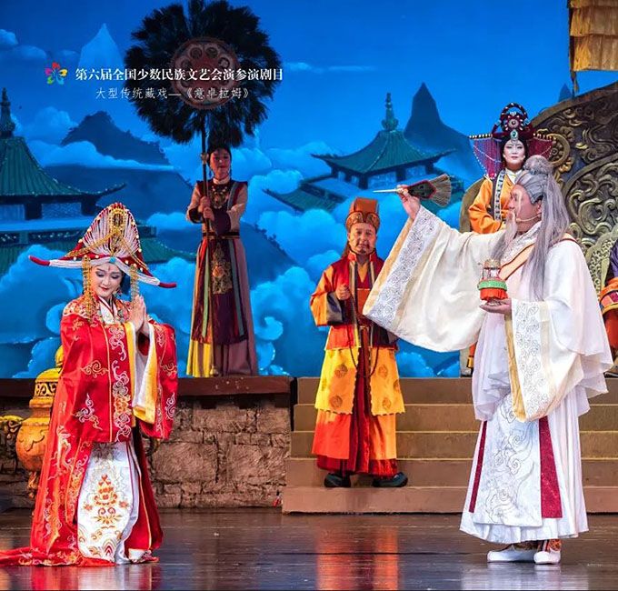 9月14日,作為第六屆全國少數(shù)民族文藝會(huì)演參演劇目,由青海省選送、青海省藏劇團(tuán)(黃南藏族自治州民族歌舞劇團(tuán))創(chuàng)作演出的藏戲《意卓拉姆》在央視網(wǎng)和國家民委門戶網(wǎng)站進(jìn)行演播。該劇講述了傳說中的仙女意卓拉姆與人間的諾桑王子相愛,歷經(jīng)挫折與磨難后終成眷屬的愛情故事,表現(xiàn)出意卓拉姆對(duì)愛情的忠貞不渝和諾桑王子堅(jiān)韌不拔的意志。