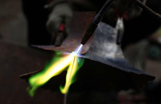景泰藍的制作的第一步,就是制胎。這是將不同規(guī)格型號的紫銅,根據(jù)設計圖的要求裁剪出不同形狀,或是扇形,或為圓形,再用鐵錘把它敲打成瓶、盤、碗、罐等各種形狀的銅胎。粗看那些已經(jīng)制作成型的銅胎,顏色樸素,其貌不揚,似以一種平和淡然的心態(tài),等待著即將到來的明麗璀璨。