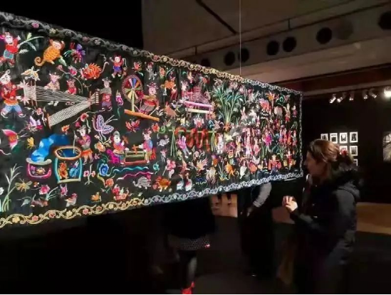 《錦繡臺江》長22米、寬0.9米,由臺江縣100余名繡娘用了一個多月時間共同繡制完成,是目前臺江苗族刺繡中最長、最精美的作品