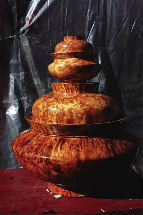官員們使用的木碗,固然也非常注重外面的金銀寶石包裹,而木碗本身,也有一套非常固定的學(xué)問(wèn),盛開(kāi)水不裂,摔到地上不會(huì)破,不燙手不冰手,體輕而質(zhì)固,經(jīng)久耐用,可以爺孫相傳。用這種碗盛食,可以完全保持食物原味,吃酥油糌粑等油肉類食品猶為適宜。比之于一般瓷碗,是碗中上品。這種木碗一般都是選用一些稀有雜木的節(jié)或者根雕琢而成,除了材料本身,在加工過(guò)程中的工序也十分重要,必須要加工出來(lái)一些獨(dú)特的花紋,比如磷火紋,或豬鬃紋,或貓頭鷹眼紋等,有這種花紋的碗,就要格外名貴,比如這次普布次仁兄弟所制作的大型核桃木碗,全身均勻地布滿了貓頭鷹眼紋,所以才能賣出這么高的價(jià)格。在西藏很多地區(qū),都流傳著這樣一個(gè)諺語(yǔ):“一只上等木碗等于10頭牦牛。”