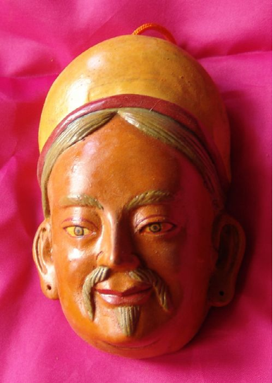 據(jù)普布次仁介紹,早在吐蕃王朝時(shí)期,西藏就有宗教舞蹈羌姆和名為“吉達(dá)吉姆”的歌舞劇。“吉達(dá)吉姆”在演出時(shí)演員要戴上白色面具,其表演的內(nèi)容是請求天神降雨或不要讓本地出現(xiàn)冰雹、刮大風(fēng)等自然災(zāi)害。這種歌舞劇在今天的日喀則地區(qū)仍然存在,人們常將之稱為“抗災(zāi)歌舞”。而在宗教舞蹈羌姆中,面具多數(shù)是根據(jù)佛經(jīng)及寺院殿堂中的塑像制作的,制作手法要求較高,以立體造型為主。