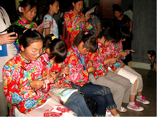 內(nèi)蒙古和林格爾剪紙是中國北方剪紙最具代表性的剪紙文化遺存之一,是由世代生活在和林格爾地區(qū)的農(nóng)牧民勞動?jì)D女為主體創(chuàng)造的,經(jīng)過代代傳承發(fā)展,成為承載本土民族文化基因的重要的非物質(zhì)文化。二十世紀(jì)七、八十年代以來,隨著經(jīng)濟(jì)社會向工業(yè)文明的急速轉(zhuǎn)型,人們的生產(chǎn)、生活方式和觀念發(fā)生了重大轉(zhuǎn)變,和林格爾剪紙面臨消亡的境地。老一輩和林格爾民間剪紙傳承人大都生活窘困,有許多已相繼辭世,她們長達(dá)七、八十年藝術(shù)實(shí)踐所形成的這一古老文化傳承也因此面臨人亡藝絕,而年輕一代剪紙隊(duì)伍又尚未形成,和林格爾剪紙的發(fā)展出現(xiàn)了青黃不接的瀕危狀況。帶著全社會的關(guān)注,1998年7月10日,在時(shí)任和林格爾縣委宣傳部長姚子明同志的支持下,和林格爾縣成立了內(nèi)蒙古自治區(qū)第一個(gè)旗縣剪紙學(xué)術(shù)組織——和林格爾剪紙學(xué)會。和林格爾剪紙學(xué)會的成立,是和林格爾剪紙文化事業(yè)發(fā)展的一個(gè)里程碑和轉(zhuǎn)折點(diǎn)。多年來,和林格爾剪紙學(xué)會克服困難,深入搶救、發(fā)掘、整理和保護(hù)了縣境一大批珍貴的原生態(tài)剪紙遺存和老一輩剪紙傳承人。從1994年到2010年,共已累計(jì)搶救、發(fā)現(xiàn)珍貴的原生態(tài)和林格爾剪紙七萬余幅,發(fā)現(xiàn)和保護(hù)老一輩剪紙傳承人2600余人,其中有140余名70歲以上的老一輩剪紙傳承人,學(xué)會做為重點(diǎn)搶救、考察對象而開展了全年跟蹤式搶救、保護(hù)和記錄。和林格爾剪紙學(xué)會對已發(fā)現(xiàn)的老中年剪紙傳承人給予物質(zhì)獎(jiǎng)勵(lì)和精神關(guān)懷,激活了人們對于剪紙傳承的積極性和創(chuàng)作熱情,以農(nóng)村婦女為主體的傳承群體又重新拿起剪刀,開始了剪紙的傳承和傳播。多年來,和林格爾剪紙學(xué)會在段建珺會長的帶領(lǐng)下,以“讓老大娘們重新拿起剪刀,讓年輕一代傳承剪紙”為宗旨,積極開展各類剪紙活動,努力探索剪紙?jiān)谛滦蝿菹碌慕逃齻鞒泻桶l(fā)展工作,涌現(xiàn)出以張花女、段建珺等為代表人物的一大批才華橫溢,在國內(nèi)外有影響的杰出剪紙傳承人和經(jīng)典剪紙作品。百歲剪紙大師張花女出生于清代光緒年末年,剪紙學(xué)會發(fā)現(xiàn)她時(shí),老人已是96歲高齡。在學(xué)會的幫助下,她重新拿起剪刀,傳承和創(chuàng)作了大量剪紙,堪稱珍品。張花女的作品,將剪和紙的特性發(fā)揮到了幾盡完美的境界,圓潤而不浮華,凝重而不果板,簡約而不單簿,通俗而不失典雅。她剪的《魚龍變化》、《蒙人進(jìn)城》、《碾場》等作品,反映了遠(yuǎn)古時(shí)期仰韶文化與紅山文化、中原文明與草原文明在該區(qū)域碰撞、交流、融合的歷史遺存,具有很高的藝術(shù)考古價(jià)值。在長達(dá)一個(gè)多世紀(jì)生命的最后幾年中,張花女用剪刀和紅紙創(chuàng)造了一個(gè)當(dāng)代中國剪紙的神話。