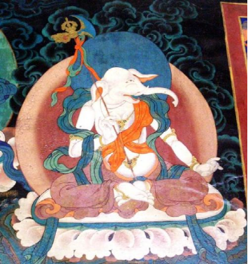 堪日派也稱“藏孜”畫派,早期受鄰國尼泊爾和印度的影響較大,流行于江孜和日喀則,特點是構(gòu)圖飽滿、色彩渾厚深沉,人物造型豐滿、追求曲線變化。這一畫派的壁畫多繪制在江孜白居寺以及日喀則扎什倫布寺、薩迦寺,后兩者雖同屬該派,但由于繪制年代不同,風(fēng)格上略有差異。