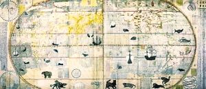 李之藻年輕時就對實學頗感興趣,曾自行繪制過明朝兩京十三省的地圖。見到利瑪竇用西法繪制的世界地圖后,李之藻敏感地意識到,這個地圖的繪制方法與中國傳統(tǒng)的“計里畫方”方法不同,是“取天文以準地度”,用經(jīng)緯度確定地理方位。對利瑪竇的學問一見而傾心的李之藻,每天都要到利瑪竇的公寓學習地理、天文知識,每次都要花上四五個小時。1602年,李之藻與利瑪竇結合中西繪圖技術,合作繪制了一版世界地圖《坤輿萬國全圖》,這幅地圖改變了當時通行的將歐洲居于地圖中央的西方繪圖格局,把子午線向西移動170度,從而使東亞的中國居于地圖的中央,并且全圖標上了詳細的漢字標識,這是中國最早的世界地圖。
