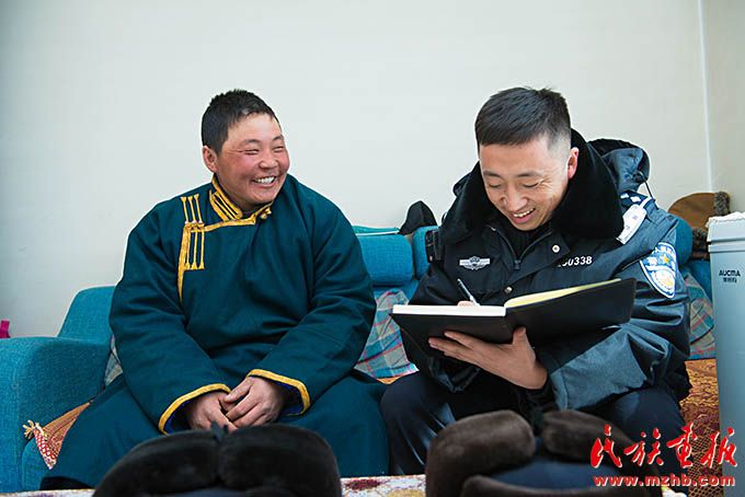 無論在哪個邊境派出所,敖日奇朗都跟牧民們以心交心,以誠相待,成為好朋友。如今,敖日奇朗在諾門罕布日德邊防派出所工作五年了,也常有新寶力格邊防派出所轄區(qū)牧民打來電話,咨詢法律問題,他每回都耐心地解答?!澳撩衽笥褌兊募冋尜|(zhì)樸平復(fù)了我剛到這里時躁動的心。邊境派出所是邊民生命財產(chǎn)安全的保障,隨時為轄區(qū)群眾牽線搭橋辦事。邊防警察與牧民的良好互動,會在關(guān)鍵時刻發(fā)揮重要作用,這恰恰也是我們開展走訪工作的意義所在。”敖日奇朗感慨道。