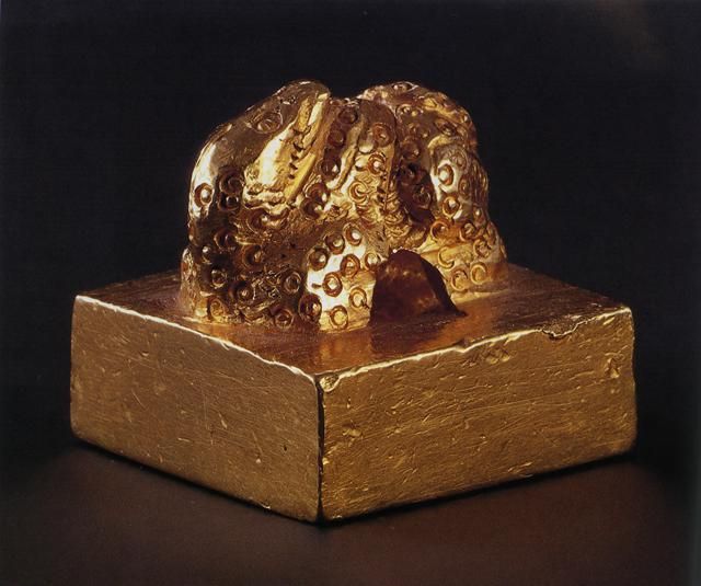 彌生時(shí)期,在中日關(guān)系史上的里程碑事件,是在日本福岡地區(qū)發(fā)現(xiàn)一枚金印,上有“漢委奴國王”五個(gè)字(圖七)?!逗鬂h書·倭國傳》中有“光武賜以印綬”的記載。即漢光武帝建武中元二年(公元57年),“奴”國曾遣使到洛陽,漢朝賜其王以金印。