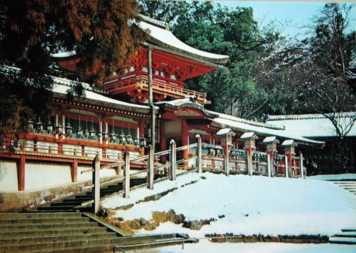 春日大社是日本神社,貴族藤原氏為自己家族而建。每年八月十五,神道兩側(cè)2000多個(gè)石燈籠將被點(diǎn)燃,稱為萬燈節(jié)。日本人新年那天會舉家去神社參拜(圖二十八)。
