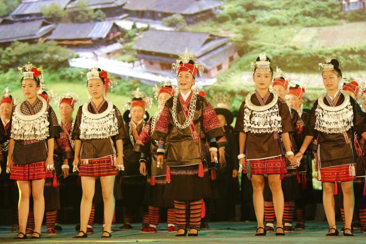 苗族飛歌以劍河革東鎮(zhèn)所在地的飛歌最為優(yōu)美。因?yàn)楦咭舨糠秩渴褂谜嫔ぐl(fā)音,音調(diào)高亢嘹亮,豪邁奔放,曲調(diào)明快,穿透力強(qiáng),有很強(qiáng)的感染力,唱起來聲振山谷,山鳴谷應(yīng),幾里外都能聽到。演唱的場合可在酒場上唱,可在“游方場”(青年男女談情說愛的場所)上唱,也可在山澗田野忙農(nóng)活或是游玩時(shí)演唱。