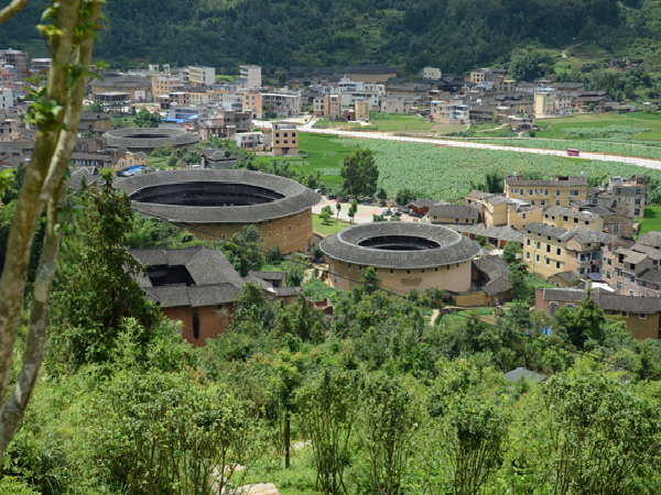 福建土樓所在的閩西南山區(qū),正是福佬與客家民系的交匯處,地勢險峻,人煙稀少,一度野獸出沒,盜匪四起。聚族而居既是根深蒂固的中原儒家傳統(tǒng)觀念要求,更是聚集力量、共御外敵的現(xiàn)實(shí)需要使然。福建土樓依山就勢,布局合理,吸收了中國傳統(tǒng)建筑規(guī)劃的“風(fēng)水”理念,適應(yīng)聚族而居的生活和防御的要求,巧妙地利用了山間狹小的平地和當(dāng)?shù)氐纳?、木材、鵝卵石等建筑材料,是一種自成體系,具有節(jié)約、堅(jiān)固、防御性強(qiáng)特點(diǎn),又極富美感的生土高層建筑類型。這些獨(dú)一無二的山區(qū)民居建筑,將源遠(yuǎn)流長的生土夯筑技術(shù)推向極致。
