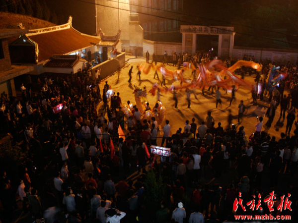 鑼鼓喧天,鞭炮齊鳴。每年的正月十三至正月十五,承啟樓所在的高頭鄉(xiāng)都要舉行隆重的民間舞龍活動,祈求新一年風調(diào)雨順、平安吉祥,比春節(jié)還要熱鬧。由于舞龍都是年輕人來參加,元宵節(jié)舞龍又可以稱做年輕人的盛會。