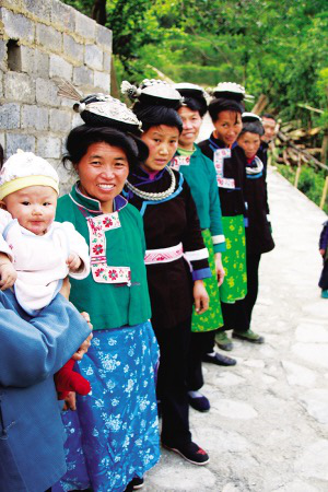 從韋榮慧那里,我還了解到,這支苗族是隨大遷徙隊(duì)伍先遷到榕江車江大壩,由于年景動(dòng)蕩,他們又翻山越嶺來(lái)到上馬路寨落腳。他們?cè)谶@里伐木為屋、開(kāi)山造田、男耕女織、繁衍子孫,自稱為“八寨苗”支系。