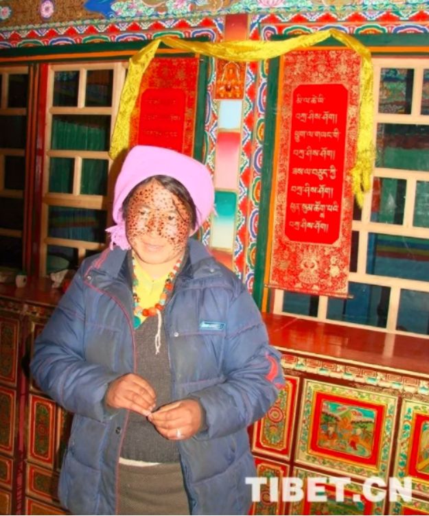 一般情況下,藏北牧區(qū)婦女外出勞作都會(huì)用圍巾將頭部和頸部圍住,這樣既可以保暖御寒又可以抵御強(qiáng)烈的紫外線(xiàn)。而“安達(dá)”可用于涂抹除了眼睛、嘴巴、鼻子外所有臉部區(qū)域。涂抹在臉上的“安達(dá)”自然干了后,婦女們往往會(huì)等到第二天甚至第三天再用溫水洗凈。