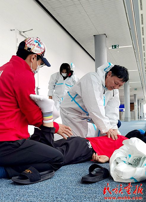 烏日根桑格利用在機(jī)場轉(zhuǎn)機(jī)時間,為國家柔道隊運(yùn)動員進(jìn)行調(diào)整治療。