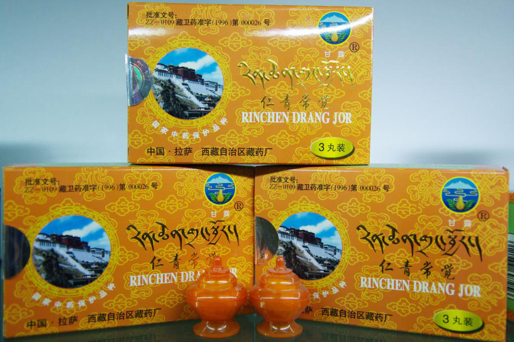 該藥是珍寶藏藥中的極品,始載于《四部醫(yī)典》。被藏民尊為“仁軟日布”,漢語(yǔ)即“靈丹妙藥”。仁青常覺(jué)能治療多種疾病,是滋補(bǔ)、長(zhǎng)壽藥物的上品。
