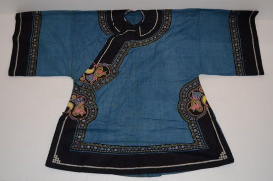 分布在臺(tái)江、施秉、鎮(zhèn)遠(yuǎn)三縣交界地一帶苗族村寨,以臺(tái)江施洞苗族為代表。該服裝上衣為家織布右衽衣,刺繡主要在前襟、衣領(lǐng)、肩袖部分,以黔東南苗族特有的破線(xiàn)繡為主,所繡圖案主要為龍紋,工藝精美,具有民族特點(diǎn)。