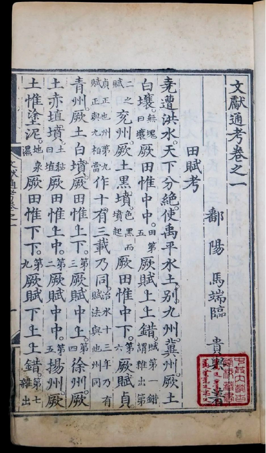 馬端臨(1254-1322),字貴與,號竹洲,饒州樂平(今屬江西)人。十九歲時以蔭補承仕郎,二十歲時漕試為第一。宋亡后,隱居家中讀書寫作,其在元至元二十二年(1285)前后開始編撰《文獻通考》,歷時二十多年,于元成宗大德十一年(1307)編纂完成。由于卷帙巨大,加上個人財力有限,《文獻通考》并沒有立即得以刊刻流傳。直到延祐四年( 1317)道士王壽衍受元仁宗委派前往東南尋訪“道行之士者”,發(fā)現(xiàn)馬端臨所撰《文獻通考》“與唐杜佑《通典》相為出入”可補《通典》之缺,申請刊刻。仁宗采納了王壽衍的建議,于至治二年( 1322)由西湖書院主持刊刻,馬端臨不顧年邁負責???,全書至泰定元年( 1324)始告刊成。