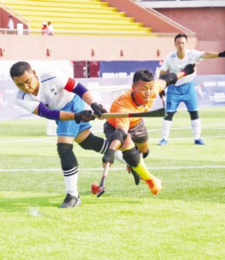 ?、夂幽详?duì)與云南隊(duì)在木球比賽中 趙培華攝