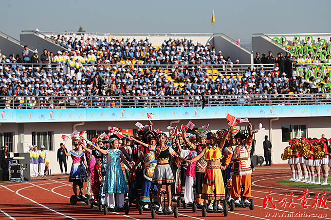 云南省少數(shù)民族運(yùn)動(dòng)會(huì)國(guó)旗、會(huì)旗方陣入場(chǎng)