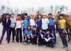 1986年,西藏有了自己專業(yè)的馬術隊(后排左四為現(xiàn)任西藏競技馬術隊領隊措東,站立者右二為現(xiàn)任西藏競技馬術隊教練單增)。